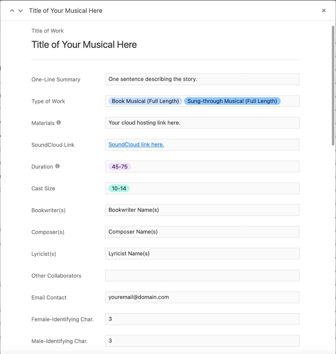 Register NowIf you are a creator of a new musical interested in submitting to the NWCC,